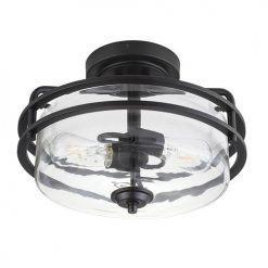 The Joska semi-flush mount light has an enhanced style to upgrade any room. This two-light semi-flush mount fixture has a transitional, matte black finish and a clear glass diffuser.