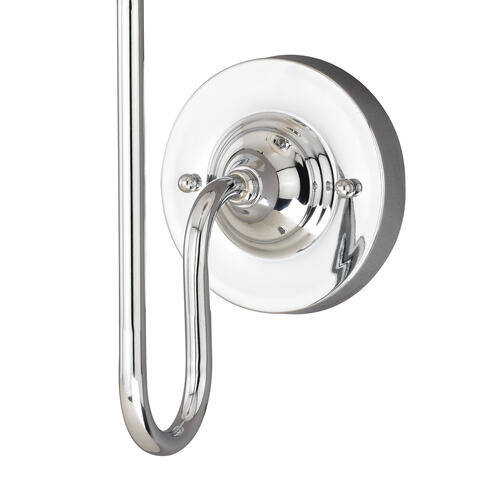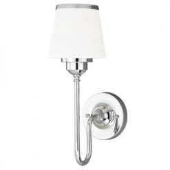 Introduce a modern look to your bathroom decor with the Kelsy collection. This 1-light vanity fixture has an elegant look that is suited for a variety of bathroom decors. It has a frosted opal glass shade that is styled similar to fabric lamp shades. The chrome finish complements a variety of cabinet and wall colors. It can also be used hallways or living areas as a wall sconce for ambient lighting.