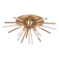 How do you improve on the classic design of a mid-century modern sputnik light fixture? You add a little glam with sparkling clear glass rods interspersed within the starburst framework. The perfectly balanced open design of the Aria collection is ideal for today¡¦s on-trend decors and is available in multiple finishes that will complement any space. Featuring exposed vintage Edison filament bulbs, this semi flush ceiling light will add elegance and drama to your dining room, living room, foyer, kitchen, hallway, or bedroom.
