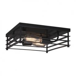 Patriot Lighting 12 inch Gaven twin pack flush mount offers a industrial, practical look. The fixture with two vintage-style bulbs features matte black finish. It can bright your day. This indoor fixture is ideal for entryways, kitchens, bedrooms, and other interior areas.