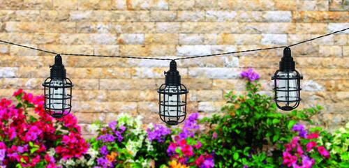 The Patriot Lighting® Cage Solar String Light Set features 10 bulbs, each with one warm white integrated LED, all on one string with an attractive nautical design. The bulbs are spaced 11.75 inches apart for the best lighting for the entire eight feet. Easily add ambiance to your outdoor patio and entertaining areas with this appealing string light set. Locate the solar panel in a sunny location for optimal performance, as the solar panel uses the sun’s rays to charge the battery during the day.