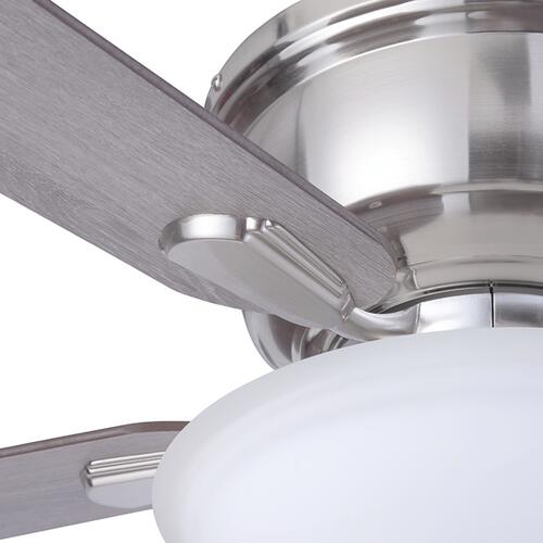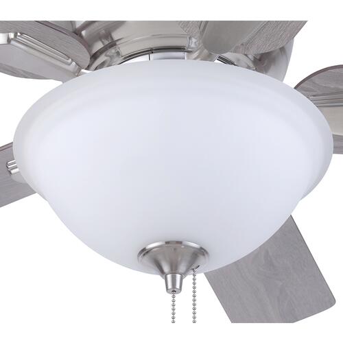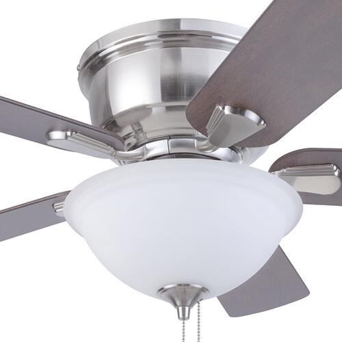 Patriot Lighting presents the 42 inch brushed nickel Austin ceiling fan with reversible blades and a frosted open glass bowl. The Austin hugger fan has a traditional design ideal for your smaller rooms with lower ceilings. Two LED medium based A15 bulbs provide adequate lighting for most rooms.