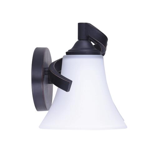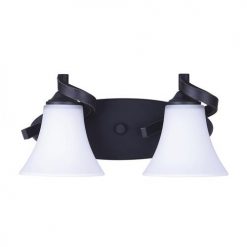 Add a twist to your bathroom lighting with the Dee two-light vanity light. Dee stays traditional with its oval backplate and curvaceous arms, while adding a transitional touch with the use of two beautiful seeded glass shades and a rubbed antique bronze finish.