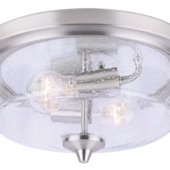 The vintage style of the Patriot Lighting® Caylon collection gives a beautifully modern treatment to the familiarity and comfort of home lighting. Caylon collection is sure to find a place in your decor with a clean brushed nickel finish and uniquely shaped seeded glass shades. Create a feeling of harmony throughout your home with additional coordinating Caylon light fixtures (sold separately). Complete the industrial feel by adding vintage style bulbs.