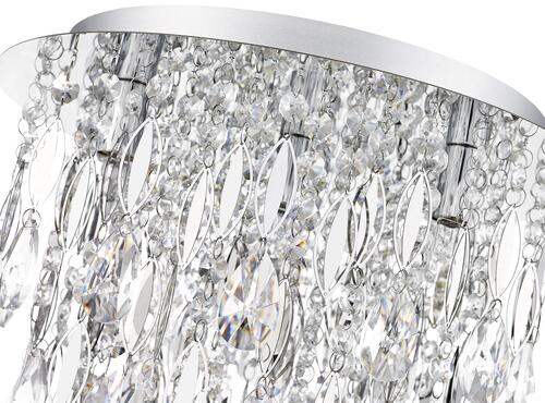 Set off a dazzling display with the Shana four-light flush mount ceiling fixture by Patriot Lighting®. With its cascading tiers of sparkling faceted crystal prisms and drops, the Shana makes a glamourous entrance hall or stately living room shine. A polished chrome round canopy and four included G9 bulbs with a warm white hue will gracefully light your space for years to come. Shana comes with incandescent bulbs.