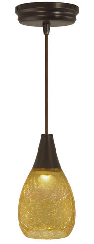 The Sidney LED mini-pendant features a light bronze finish and a beautiful amber crackle glass diffuser. The fully dimmable LEDs are energy-efficient and will provide bright white light.
