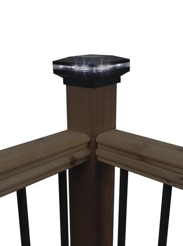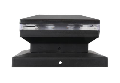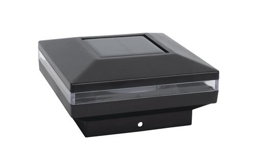 The Patriot Lighting® Lamar Solar Post Cap Light is a new and exciting post cap design; highlighted by a modern, sleek, low profile look. Featuring 8 soft white SMD LEDs located around the perimeter of the light (2 per side) and providing 15 lumens of light output, this post cap light will be sure to accentuate your fence or deck posts in your yard. Fits standard 4 inch wood posts and includes an adapter to fit standard 6 inch wood posts, is very easy to install and includes all mounting hardware. Place this light in a sunny location for optimal performance, as the solar panel uses the sun’s rays to charge the battery during the day. It automatically turns on at dusk for up to 8 hours of illumination.