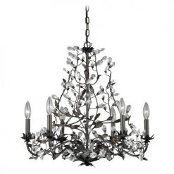 Nature enters the home with the Trellis Collection by Patriot Lighting®. Intertwining leaves and flower stems rendered in architectural bronze finish with gold accents are complemented by graceful crystal accents providing an alluring flourish. This collection brings to life the romantic side of home décor and will serve as the perfect accent to any room.