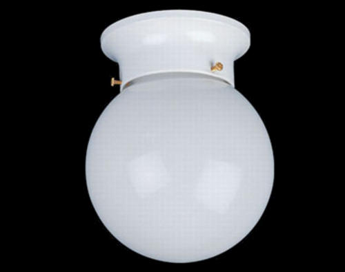 This Patriot Lighting® Amity six-inch white finish globe flush mount light is suitable for a variety of spaces. The flush mount light requires one incandescent bulb to illuminate the room with warm light.