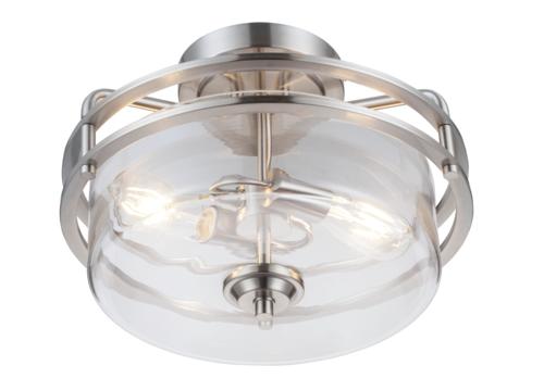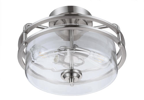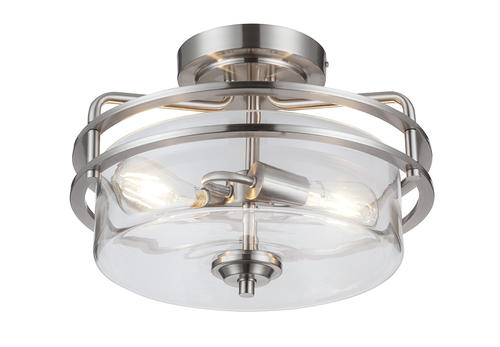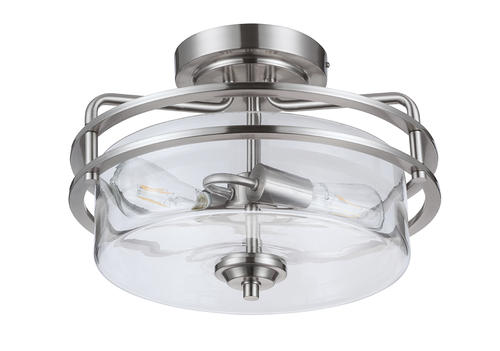 The Joska semi-flush mount ceiling light adds enhanced style that will upgrade the look in any room. This two-light semi-flush mount fixture has a transitional, brushed nickel finish and a clear glass diffuser.