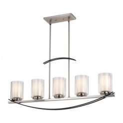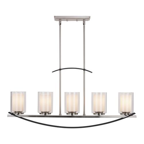 A sleek and modern approach to lighting, the Lief five-light island chandelier features satin nickel with graphite accents that make it a stylish and attractive fixture. Pair that with the clear outer and white opal inner glass and this fixture becomes a unique find. This chandelier is versatile enough to blend in many different décor styles.